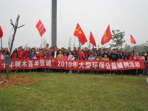 响应全球环保关注,倡导低碳绿色生活。 3月13日,值“3.12”植树节之际,300多位来自信诚人寿东莞营销服务部内外勤员工及特邀客户代表组成了百余辆张贴有“十年树木,百年信诚”标志浩浩荡荡的车队,来到松山湖绿化管理区,展开了“为家园增添绿色”大型环保公益植树活动。