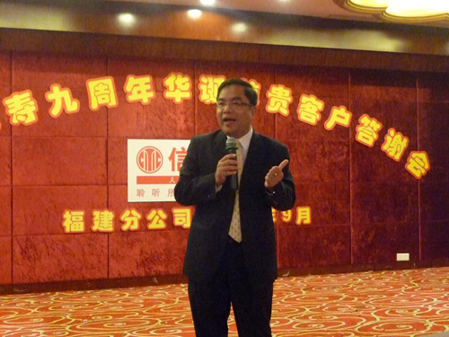 (高阶在答谢宴上衷心感谢榕城朋友对信诚人寿的支持)