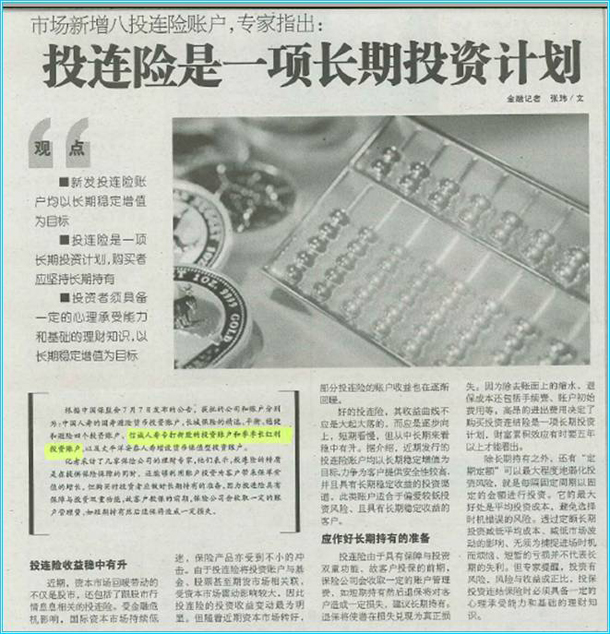 投连险是一项长期投资计划-晶报