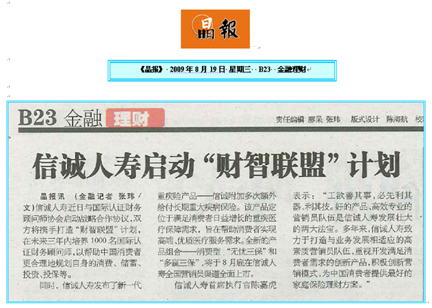 信诚人寿启动“财智联盟”计划并推出新一代重疾产品-晶报