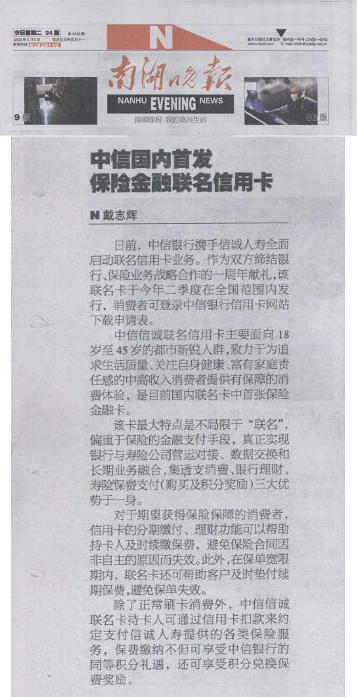 中信国内首发保险金融联名信用卡