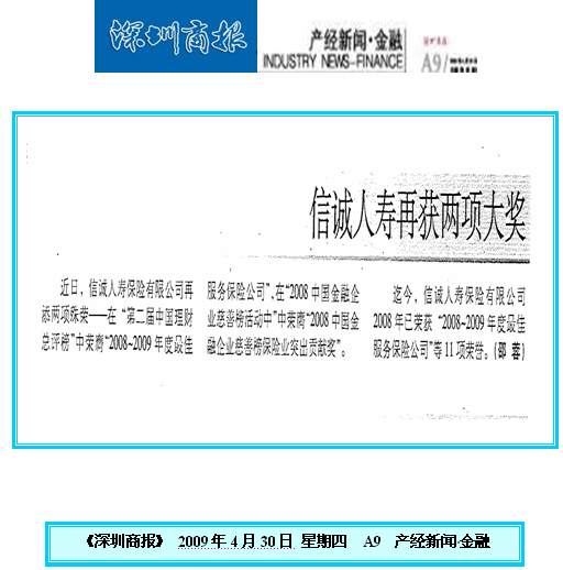 信诚人寿再获奖项-深圳商报