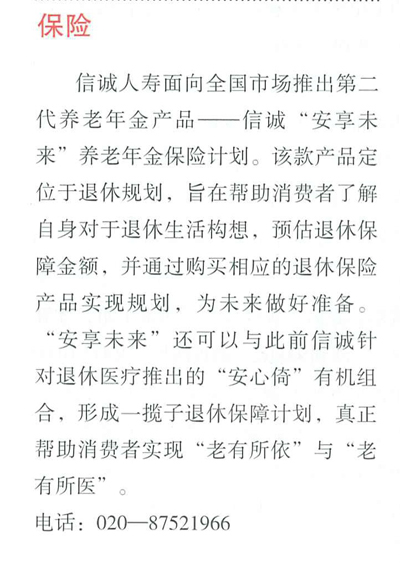 《华南理财》——信诚推出安享未来