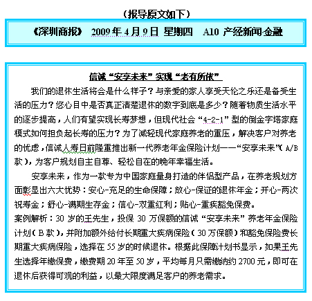 信诚“安享未来”实现“老有所依”-深圳商报