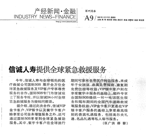 信诚人寿提供全球紧急求援服务-商报
