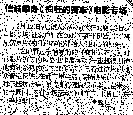 中山商报——信诚举办《疯狂的赛车》电影专场