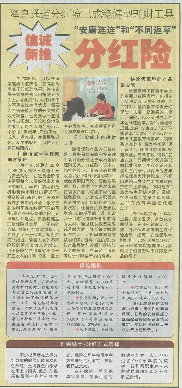 羊城地铁报——降息通道分红险已成稳健型理财工具信诚新推安康连连和不同返享分红险