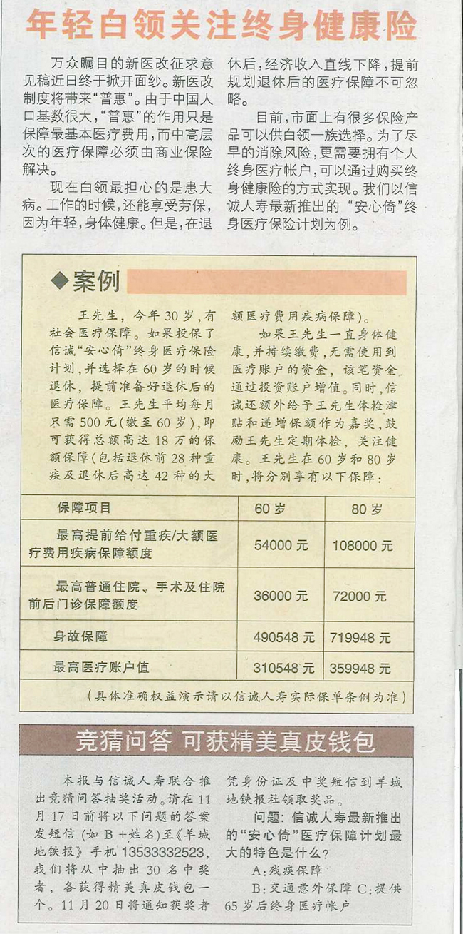 羊城地铁报——年轻白领关注终身健康险