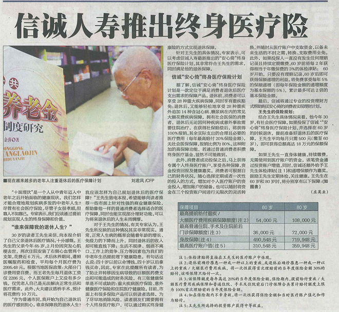 江门日报——信诚推出终身医疗险