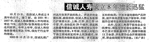 深圳商报——信诚成立八周年增长迅猛