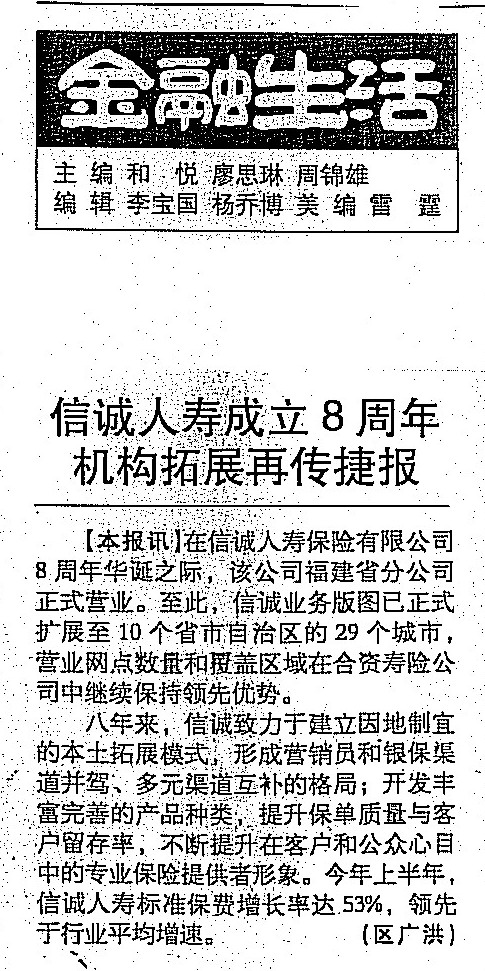 深圳特区报——信诚成立八周年,机构拓展再传捷报