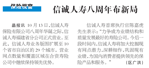 晶报——信诚人寿八周年布新局