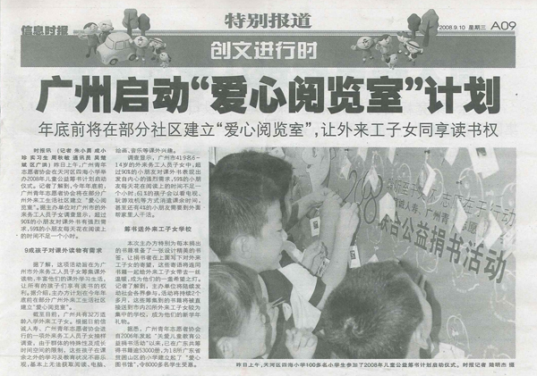 信息时报——广州启动“爱心阅览室”计划