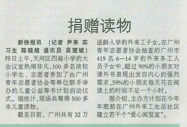 下一篇:信息时报——广州启动“爱心阅览室”计划