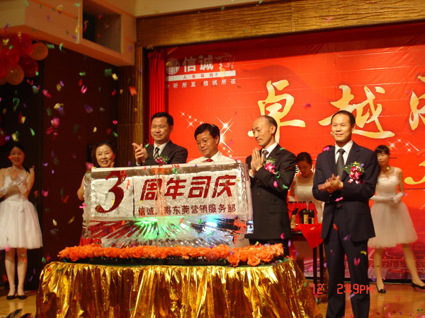 2008年4月12日,信诚人寿东莞营销服务部三周年庆典活动在东莞东城国际大酒店隆重举行,来自莞城、虎门、塘厦、常平、厚街、长安等营业网点的内外勤代表和部分东莞客户代表逾300人参加了此次庆典。