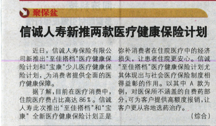 羊城地铁报——信诚人寿新推两款医疗健康保险计划