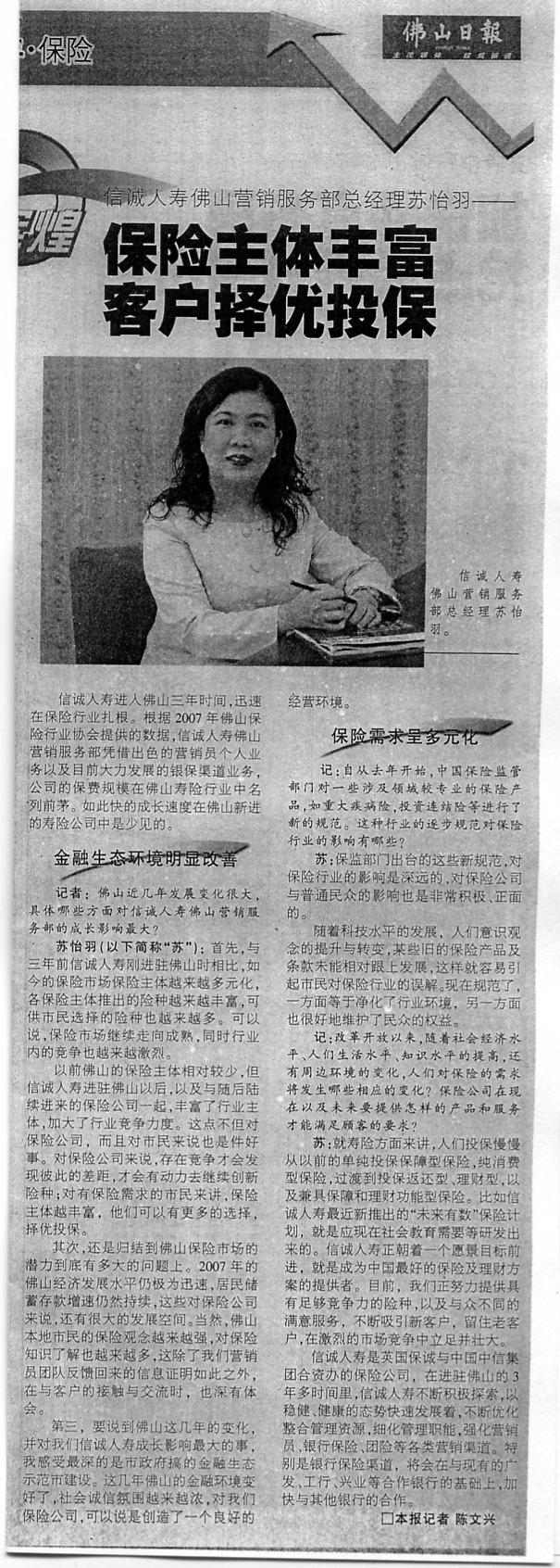 佛山日报——保险主体丰富 客户择扰投保