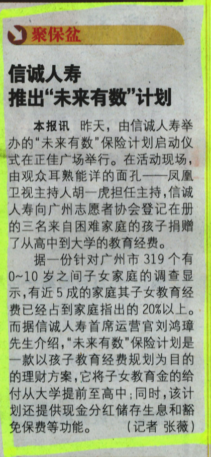 羊城地铁报——信诚人寿推出“未来有数”计划