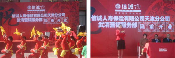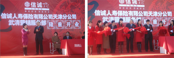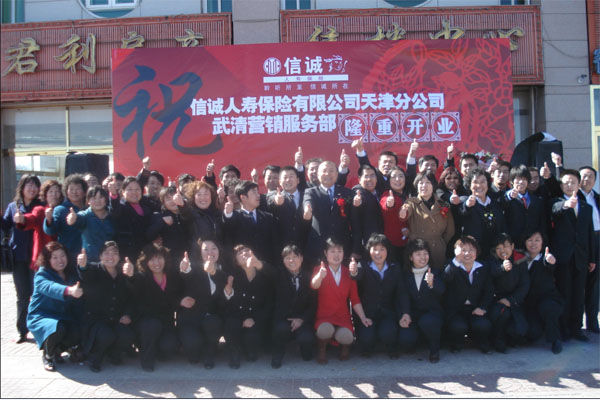 春光明媚、万物复苏,2008年2月29日,在这个充满朝气、充满希望的新年伊始,迎来了信诚人寿天津分公司武清营销服务部开业庆典,这是信诚人寿天津分公司在市区外开设的第二家营销服务部。