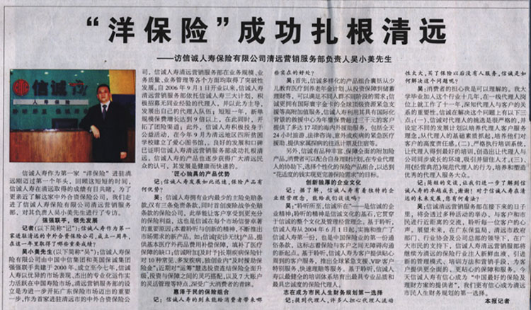 清远日报——“洋保险”成功扎根清远