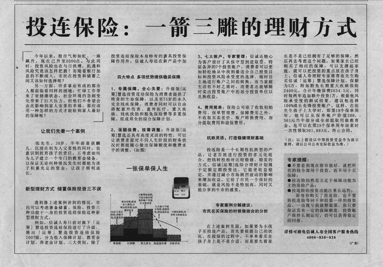 南方都市报——投连保险:一箭三雕的理财方式
