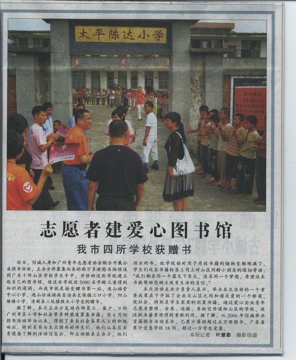 清远日报——志愿者建爱心图书馆