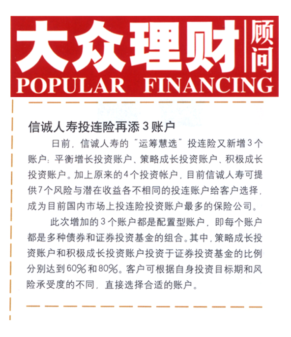 信诚人寿投连险再填三个帐户