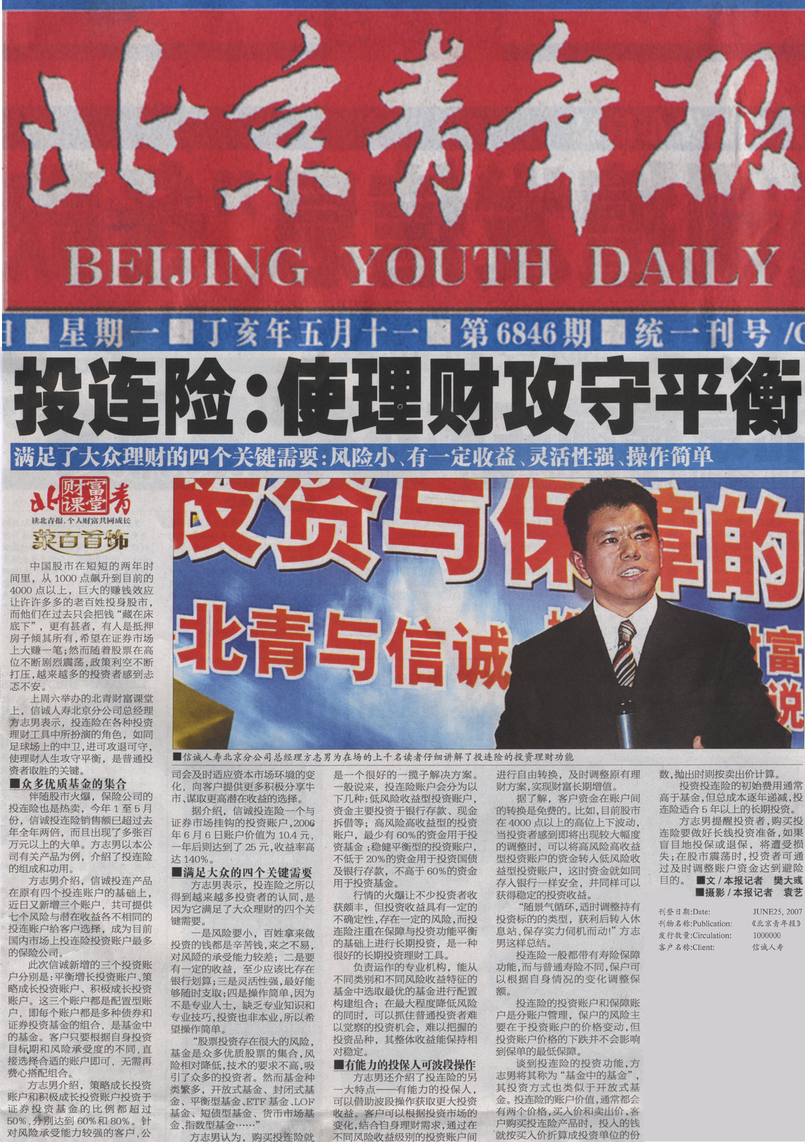 Publication: 《北京青年报》财经版