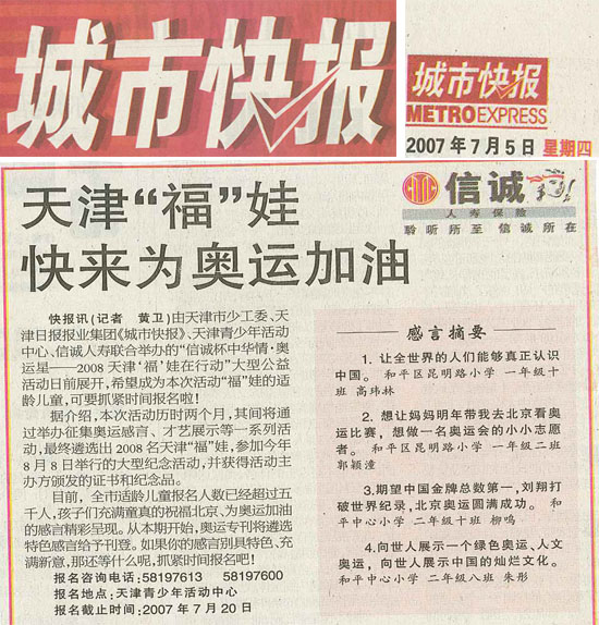 信诚杯 中华情.奥运星--2008天津‘福’娃公益活动