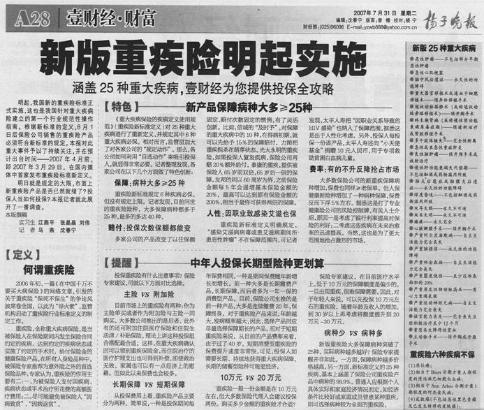 新版重疾险明起实施