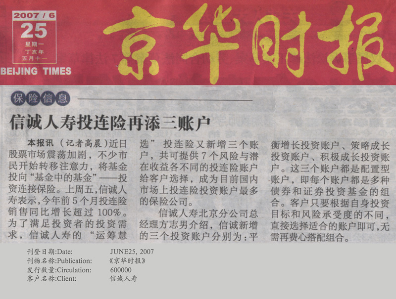 Publication: 《京华时报》财经版