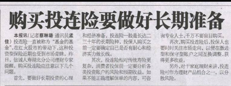 购买投连险要做好长期准备