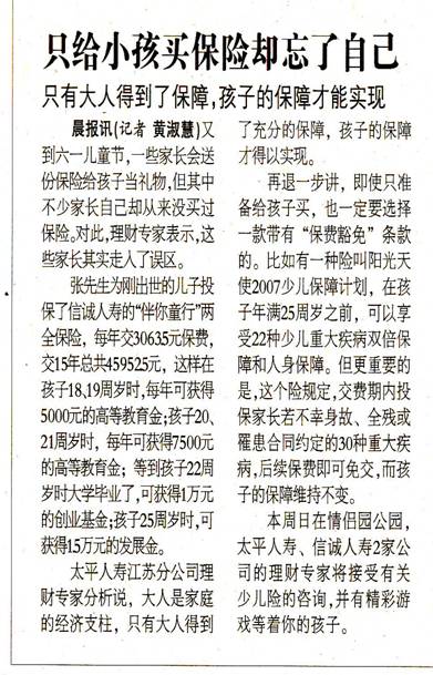 只给小孩买保险忘了自己