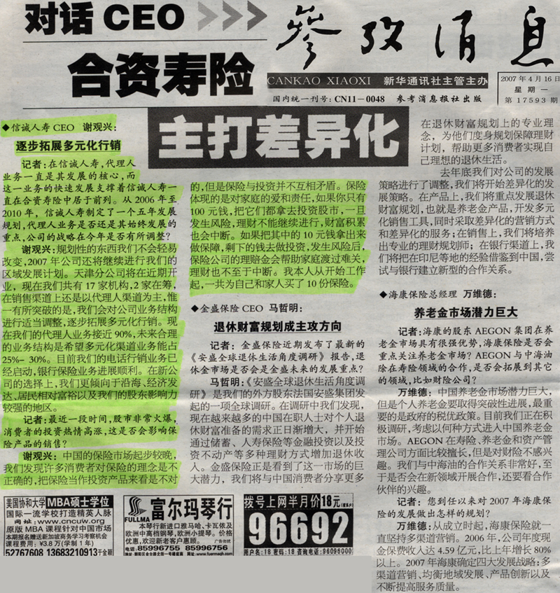 合资寿险主打差异化
