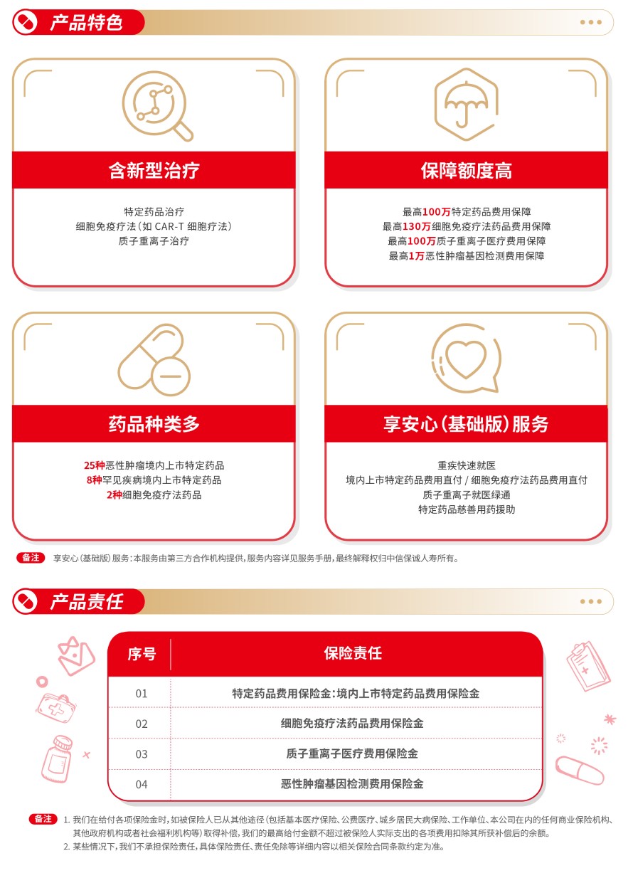责任免除:在某些情况下,我们不承担保险责任,详细内容见相关保险合同条款。此为产品的简单介绍,仅供参考,详细内容请以保险合同条款为准。相关保险合同条款:中信保诚「安心派」医疗保险