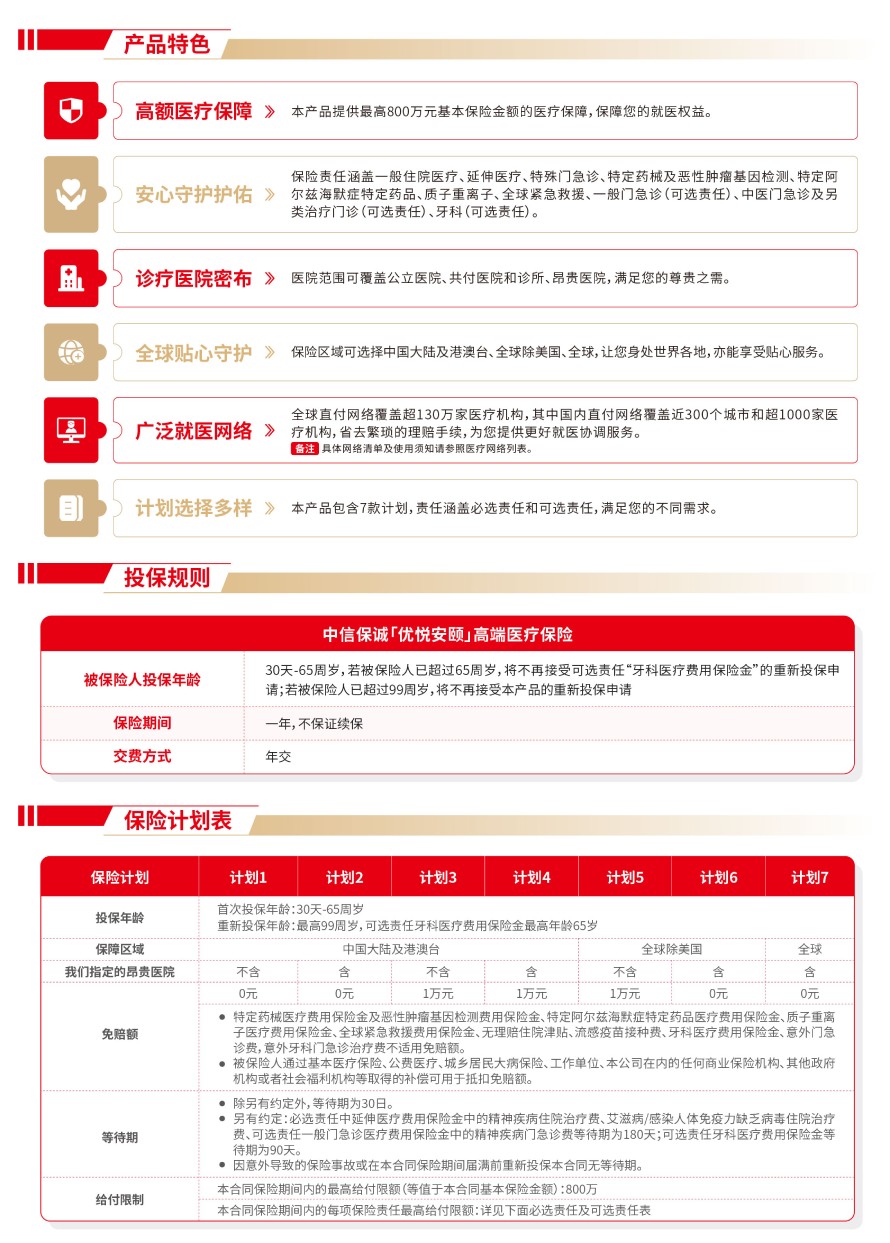 中信保诚「优悦安颐」高端医疗保险